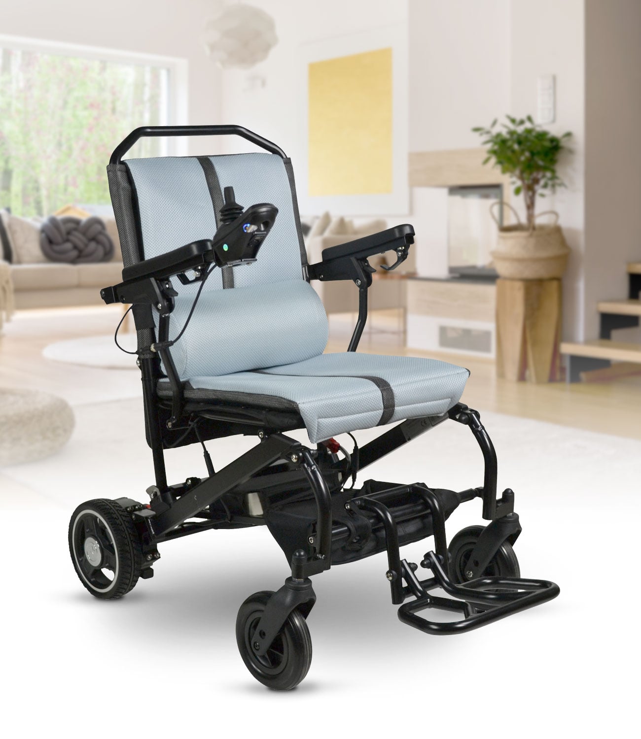• geringes Gewicht, leichter Transport: Der elektrische Rollstuhl kann leicht gefaltet und im Kofferraum verstaut werden. Er bietet auf Reisen oder bei Ausflügen eine optimale Ergänzung.