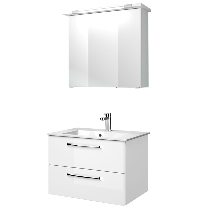 Pelipal Trentino Badmöbel Set 770-1-2-5, 77 cm, Spiegelschrank, LED-Leuchte im Kranzboden, Mineralmarmor-WT, Unterschr.
