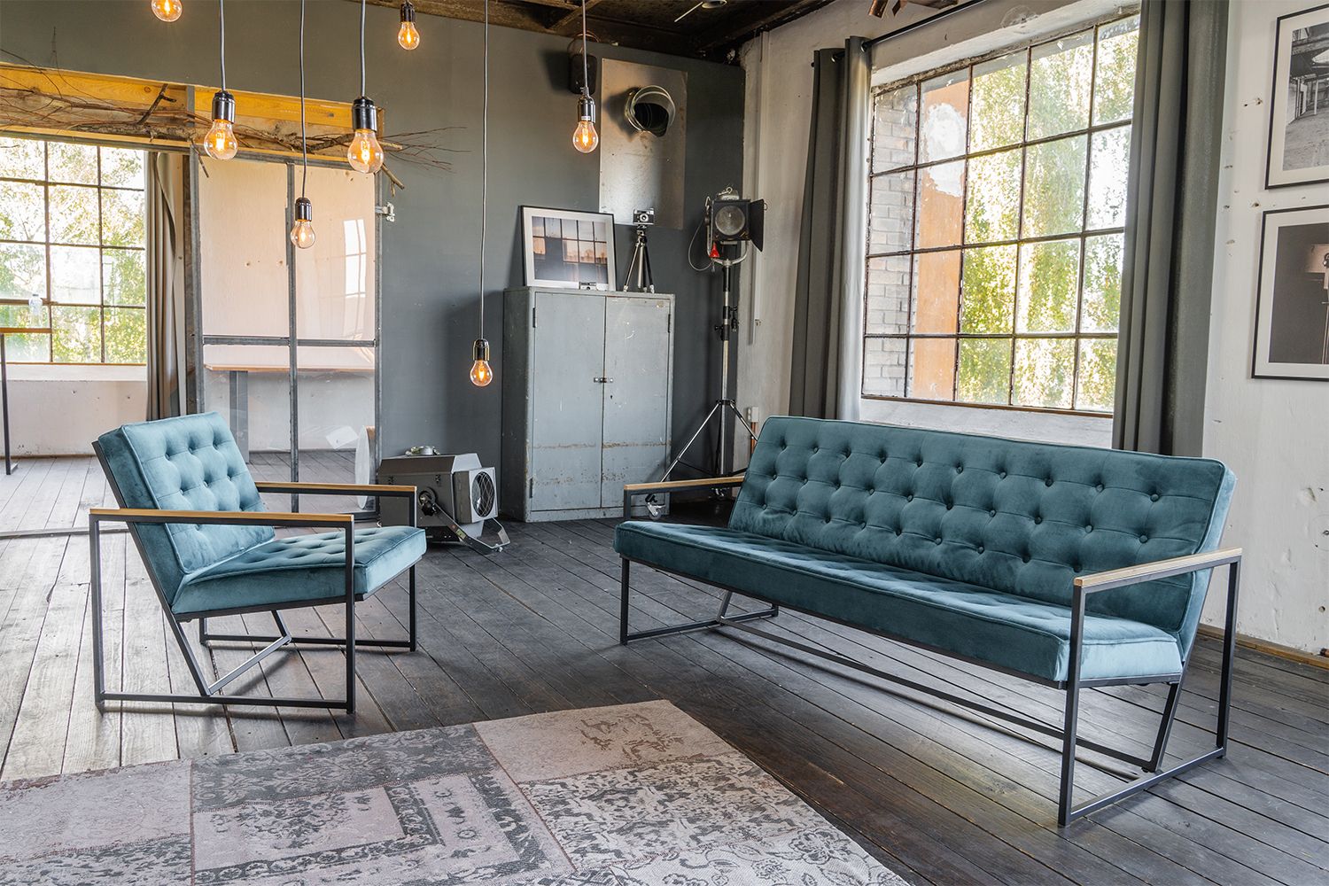 KAWOLA Sofa ARLY Polsterbank Bezug Velvet petrol