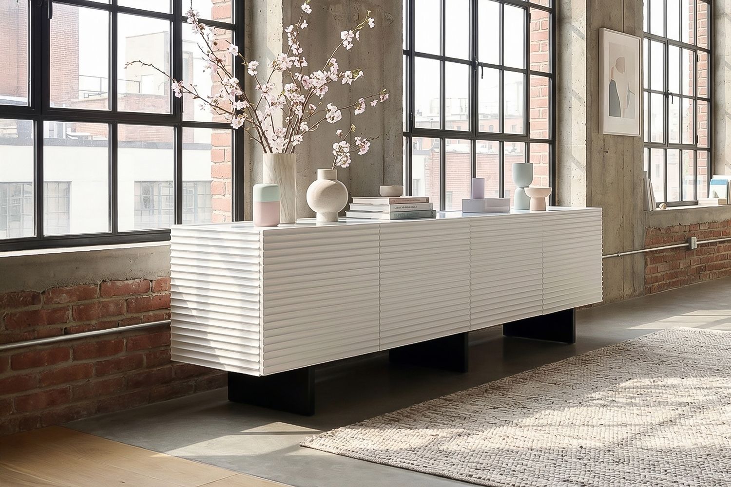 Das Lowboard LYNN von KAWOLA verbindet modernes Design mit funktionaler Raffinesse und wird zur stilvollen Basis für Ihre Medientechnik. Die markante, strukturierte Front verleiht dem TV-Board eine besondere Tiefe und sorgt für einen ausdrucksstarken Look, während die elegante Glas-Arbeitsplatte einen hochwertigen Akzent setzt. Der Korpus aus Holz steht auf einem pulverbeschichteten Metallgestell, das Stabilität gewährleistet und dem Möbelstück eine leichte, zeitgemäße Ausstrahlung verleiht. Hinter vier Türen bietet das Lowboard vier großzügige Fächer, die viel Platz für Receiver, Konsolen oder weiteres Zubehör schaffen. Die Einlegeböden lassen sich flexibel in drei verschiedenen Höhen einsetzen, jeweils mit einem Abstand von 7 cm, sodass Sie den Innenraum optimal an Ihre Bedürfnisse anpassen können. Dank Finger-Pull-Mechanismus lassen sich die Türen komfortabel ohne sichtbare Griffe öffnen, während Soft-Close-Scharniere ein sanftes und geräuschloses Schließen ermöglichen. So vereint das LYNN TV-Board markantes Design mit durchdachter Funktionalität.