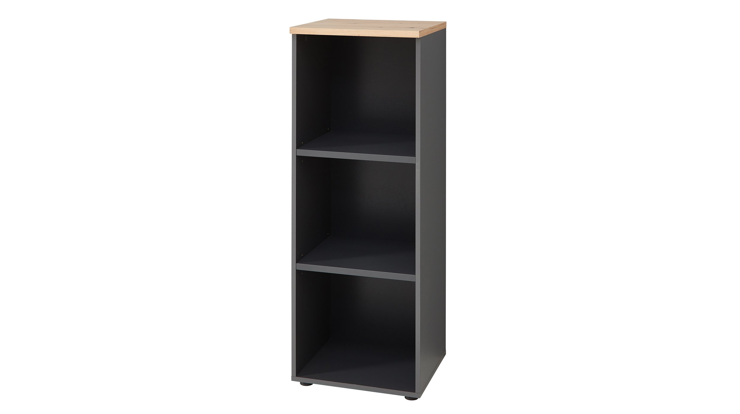 Büroregal 45 x 122 cm mit 2 Einlegeböden – MEMPHISEin perfekter Begleiter für Ihr Home Office – unser Büroregal MEMPHIS!Unser Büroregal MEMPHIS präsentiert sich als ein echtes Highlight für Ihr Heimbüro und Arbeitszimmer. Durch das moderne und dunkle Design in graphit zeigt sich das Regal sehr elegant. In Kombination mit dem Artisan Eiche Holzdekor an der Oberplatte ergibt sich ein harmonisches Gesamtbild. Unser Büroregal überzeugt nicht nur mit einem modernen Auftreten, sondern auch durch viel Platz. Auf einer Höhe von ca. 122 cm bietet das Möbelstück Raum um Ihre Bücher, Ordner und weitere Unterlagen ideal abzulegen. Zusätzlich unterstützen Sie 3 Ablagefächer bei dem Sortieren und Einräumen Ihrer Dokumente und weiteren Bürounterlagen. So erhalten Sie einen funktionalen Begleiter für Ihr Home Office und können Ihren Arbeitsalltag aufgeräumt beginnen und pünktlich zum Feierabend beenden.Bestellen Sie gleich online Ihr neues Büroregal oder besuchen Sie uns in einer unserer Filialen vor Ort. Wir freuen uns auf Sie!