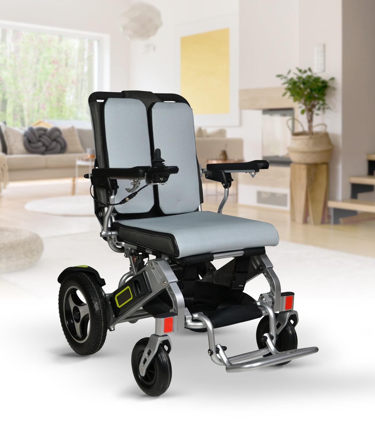 Der elektrische Rollstuhl Reschen kann leicht gefaltet und im Kofferraum verstaut werden. Er bietet auf Reisen oder bei Ausflügen eine optimale Ergänzung. Die beiden Akkus werden von den meisten Fluggesellschaften akzeptiert.