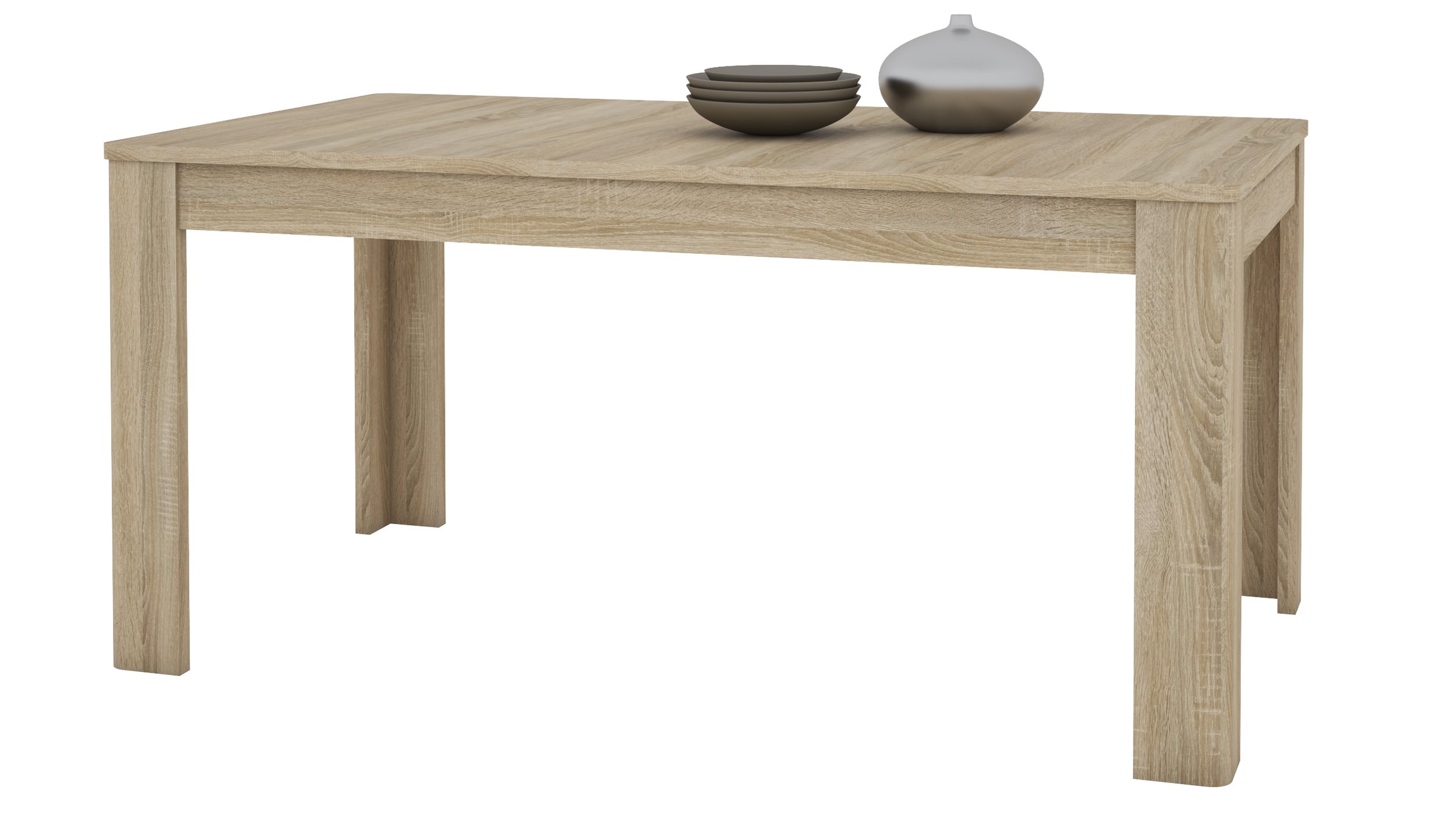 Esstisch ausziehbar auf 200 cm – ASTONSpeisen Sie künftig auch in großer Runde – mit unserem Modell ASTON!Unser Esstisch ASTON überzeugt mit einem schicken Design in Kombination mit Funktionalität. In einem modernen Sonoma Eiche Dekor gehalten strahlt der Tisch Helligkeit und Wärme aus und sorgt so für eine angenehme Atmosphäre in Ihrem Essbereich. Der zeitlos moderne Look lässt sich problemlos mit vielen Einrichtungsideen kombinieren und wird so auch in Ihrem Zuhause den perfekten Platz finden.Die Tischplatte mit den Maßen von ca. 160 x 90 cm bietet Ihnen ausreichenden Platz für gemütliche Dinner. Bei Bedarf können Sie die Tischplatte auf eine Breite von ca. 200 cm erweitern – so steht auch ausgelassenen Abenden mit Freunden und Familie nichts im Wege. Dank einer Höhe von ca. 76 cm ist der Tisch mit einer Vielzahl an Stühlen kompatibel. So können Sie Ihr Esszimmer ganz nach Ihrem Geschmack gestalten.Bestellen Sie gleich online Ihren neuen Esstisch oder lassen Sie sich in einem unserer Einrichtungshäuser beraten.Wir freuen uns auf Sie!