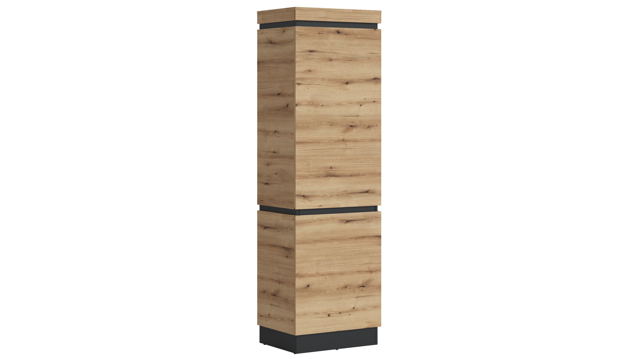 Garderobenschrank inkl. Soft-Close-Funktion – CORTELassen Sie sich von dem modernen Stil begeistern – unser Garderobenschrank CORTE!Unser Garderobenschrank CORTE besticht mit der Kombination aus warmen und kühlen Tönen. Das Coast Evoke Eiche Holzdekor dominiert die geradlinige Formgebung und verleiht Ihrem Wohnraum eine gemütliche Atmosphäre. Absetzungen in Grau sorgen für den optischen Gegenpool und schaffen so ein Ambiente mit Wohlfühlcharakter. Die stilvolle Erscheinung wird durch grifflose Fronten optimal vollendet. Somit erhalten Sie ein angesagtes Möbelstück, welches sich zu vielen weiteren Einrichtungsstilen integrieren lässt.Neben der ansprechenden Optik kann der Garderobenschrank auch mit beachtlichem Stauraum punkten. Hinter 2 Drehtüren können Sie Ihre sämtlichen Schuhe, Schals und Hüte verstauen. So können Sie Wohnutensilien auf insgesamt 5 Einlegeböden ordentlich einsortieren und stets einen aufgeräumten Wohnraum vorfinden. Dank der integrierten Soft-Close-Funktion lassen sich die Türen besonders leise schließen und zusätzlich wird noch das Material geschont. Bestellen Sie Ihren neuen Garderobenschrank bequem von Zuhause aus oder besuchen Sie uns in einer unserer Filialen. Wir freuen uns auf Sie!