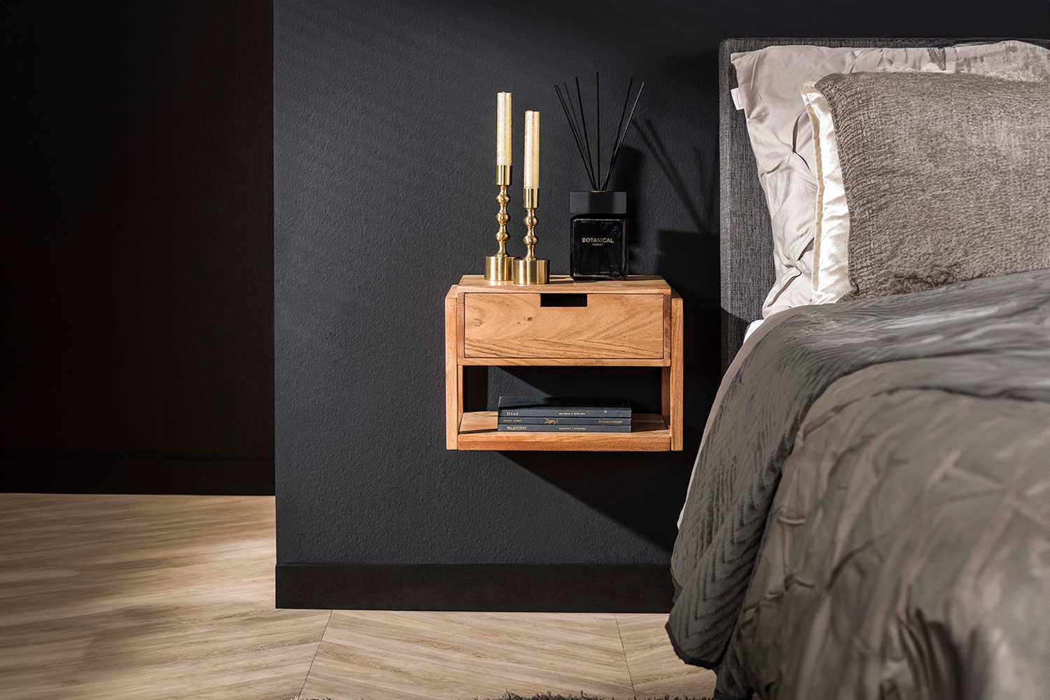 Der Nachttisch HOLYA von KAWOLA ist die ideale Lösung für moderne Schlafzimmer mit wenig Platz. Dank der Wandmontage wirkt der Raum offener und luftiger – perfekt für ein großzügiges Raumgefühl. Mi…