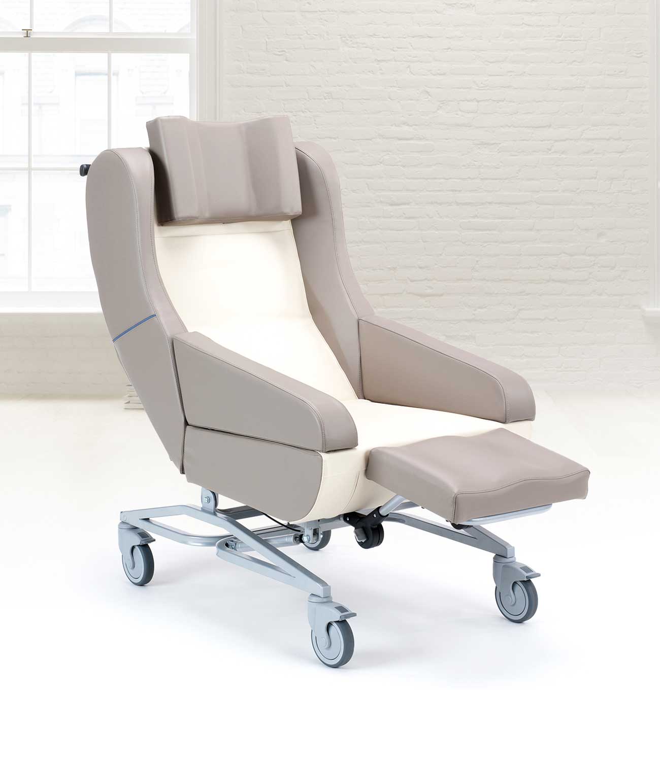 - Eine um 7 cm längere Rückenlehne bietet auch größeren Patienten ausreichend Platz